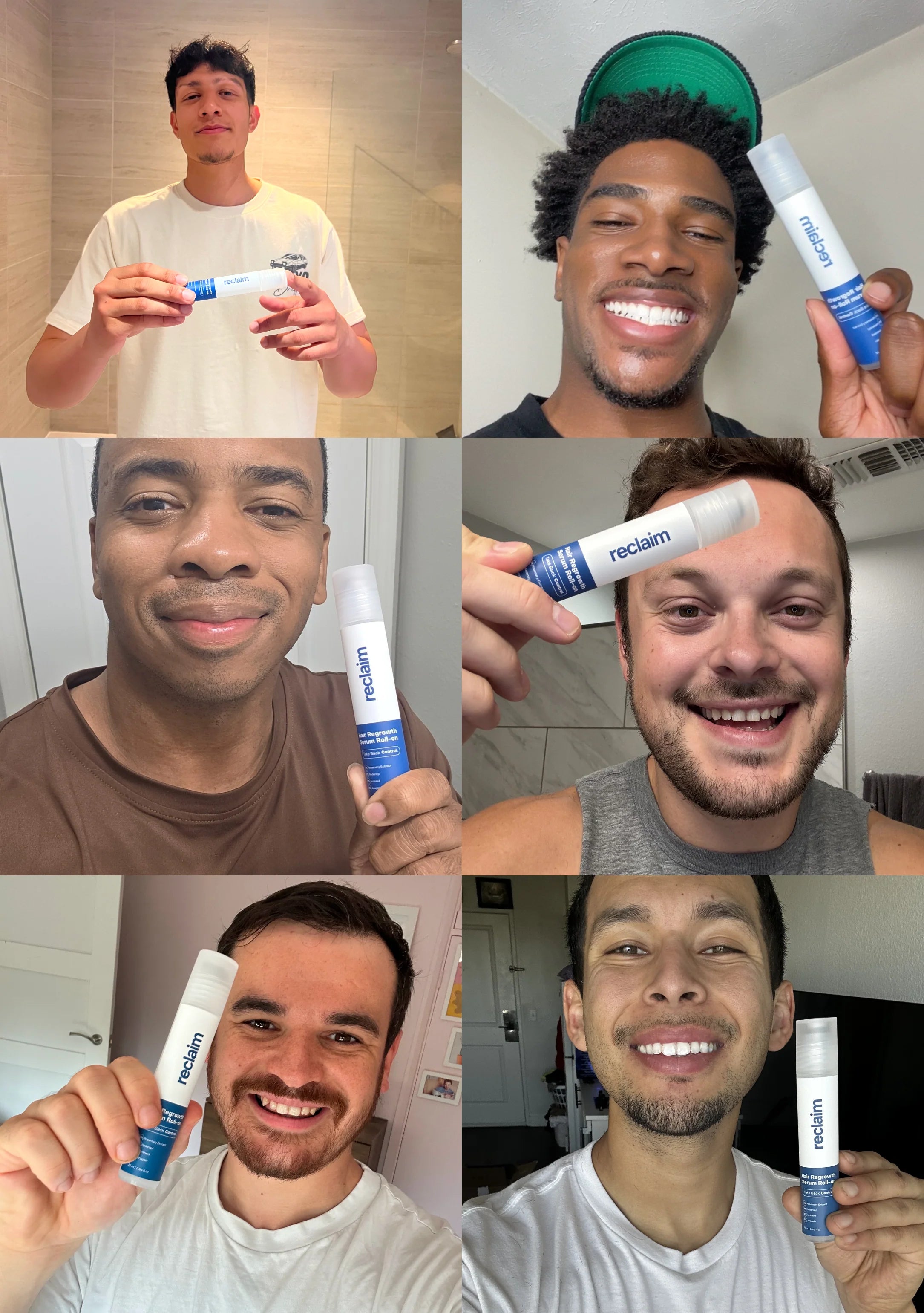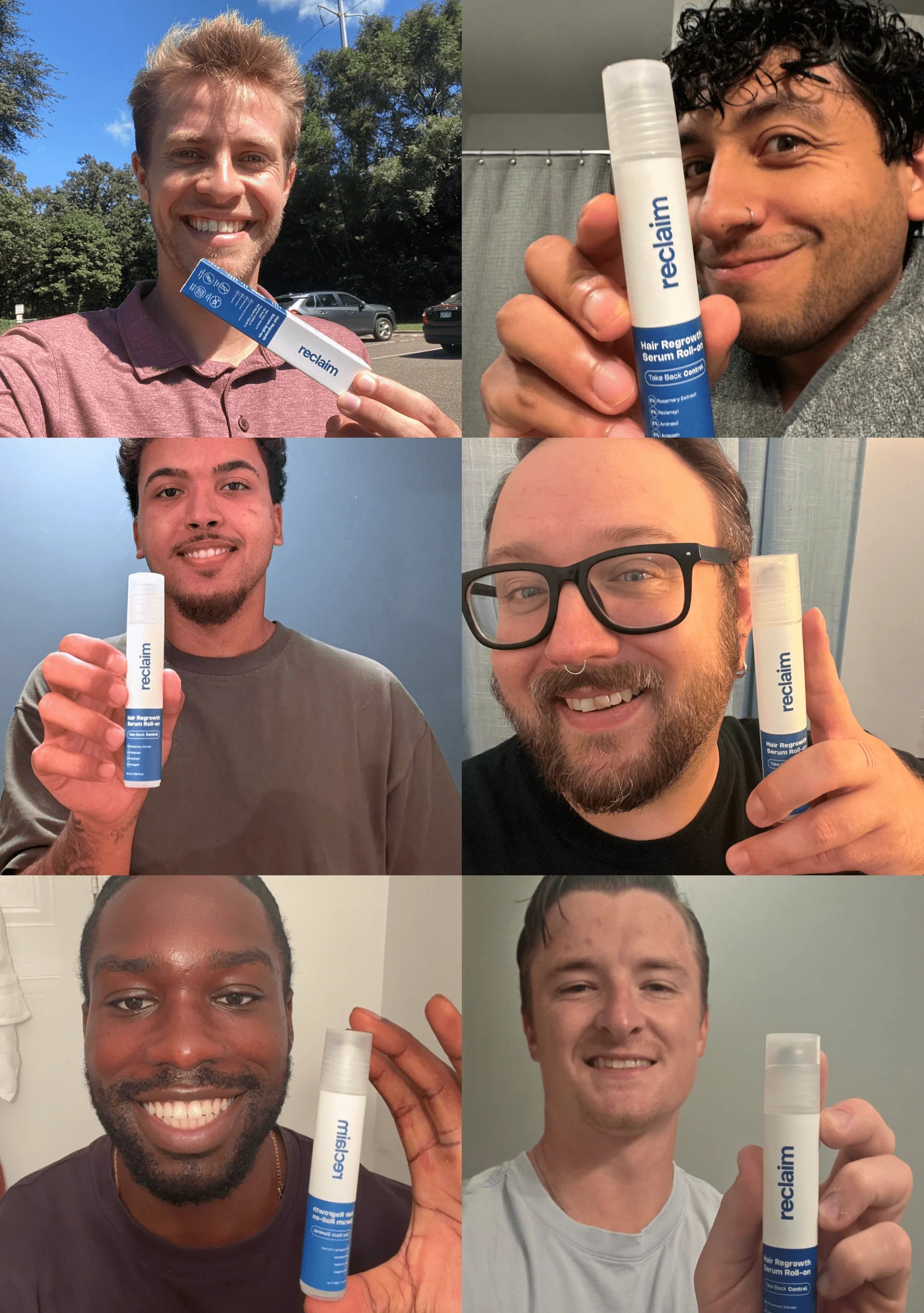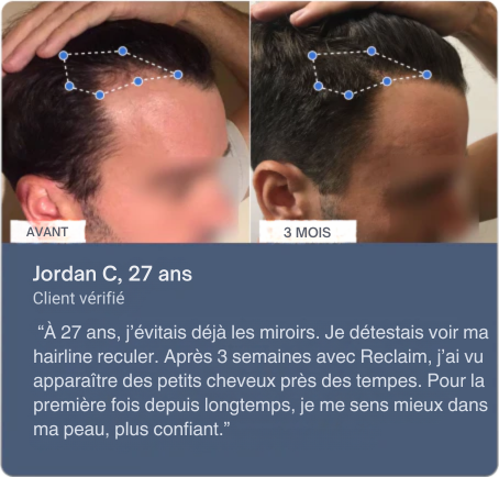 Si tu remarques un début d’éclaircissement, surtout au niveau de la ligne frontale ou des tempes, Reclaim est fait pour toi. Des milliers d’hommes l’utilisent déjà pour soutenir une hairline plus dense. Ce n’est pas de la magie, c’est de la constance appuyée par la science.